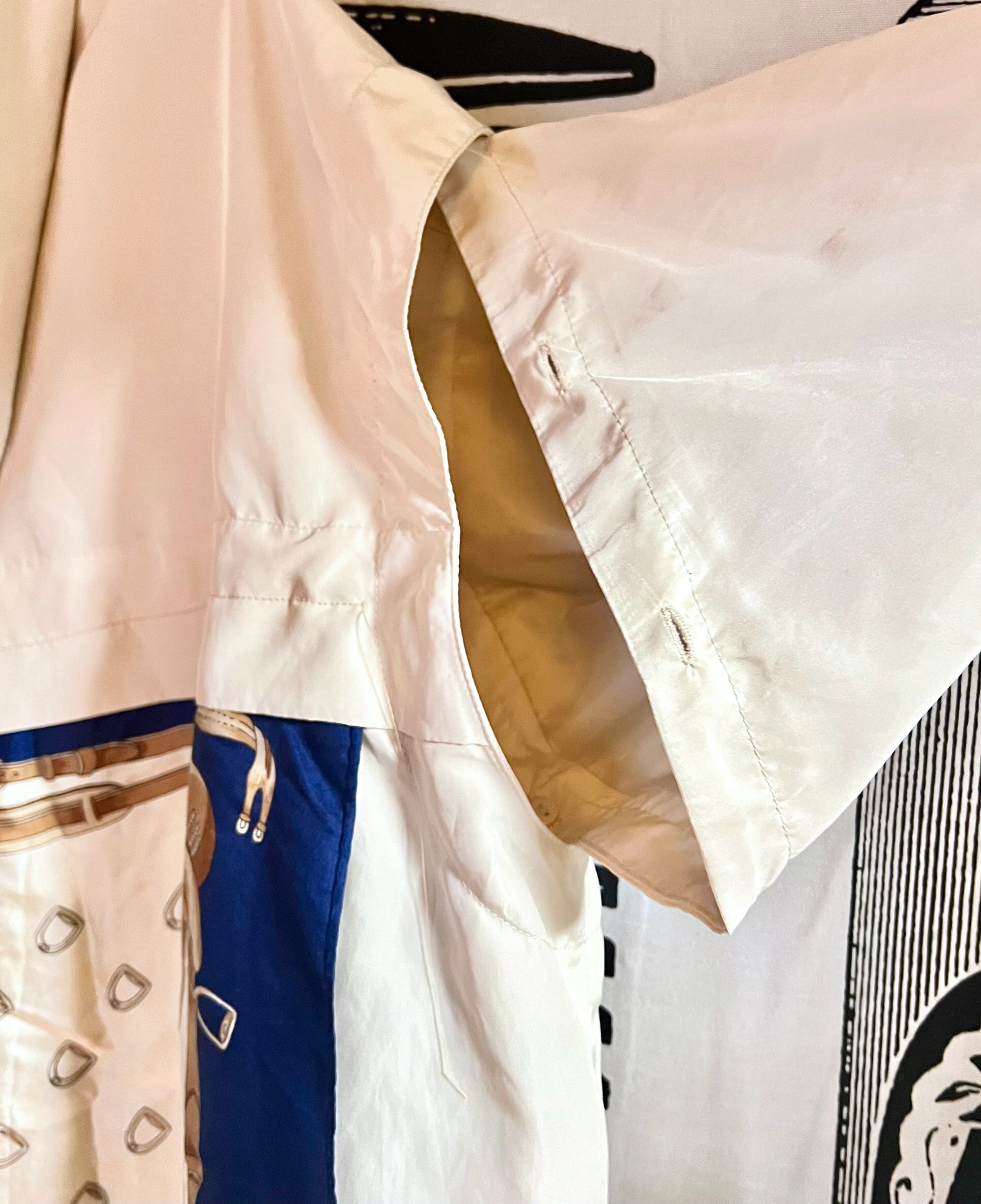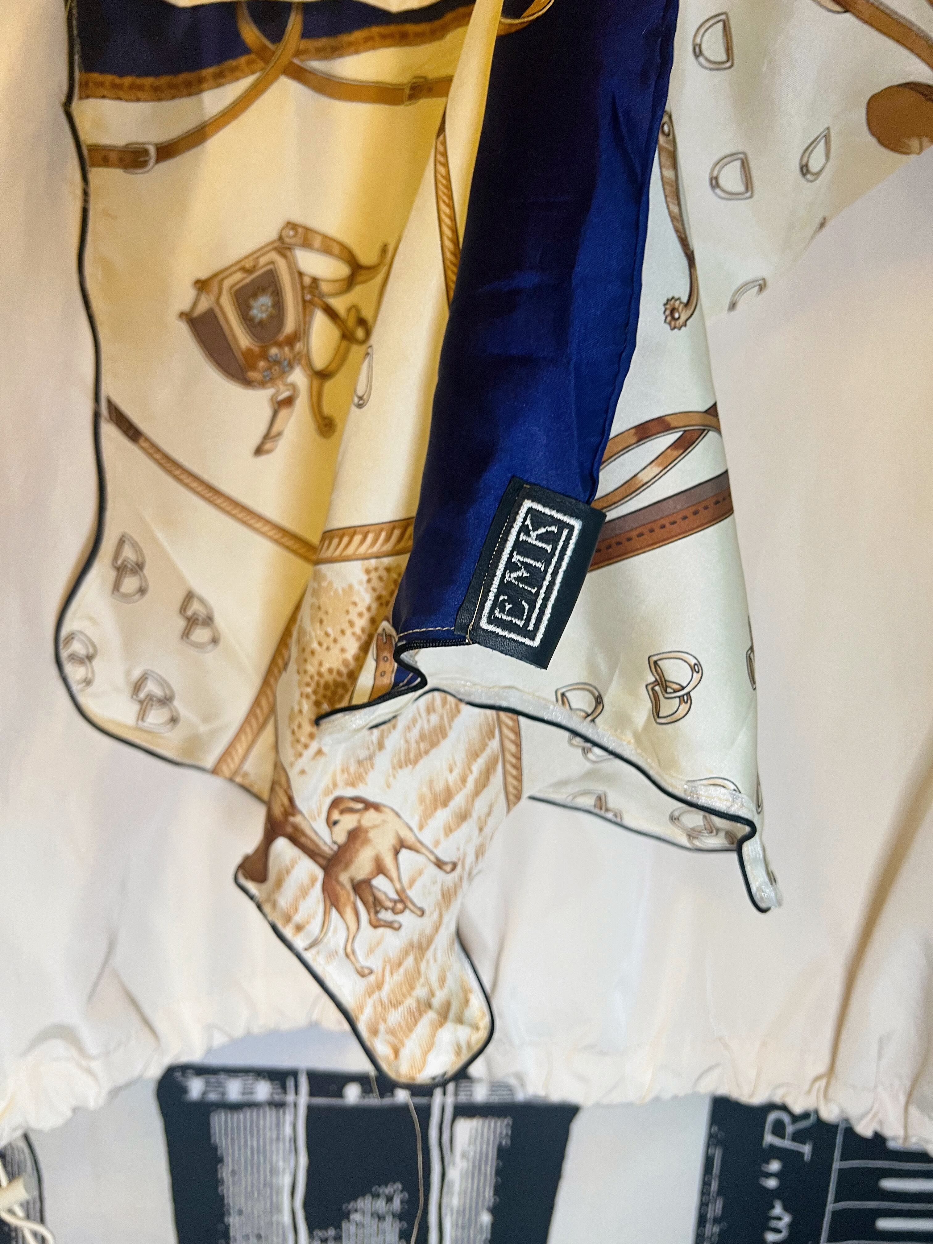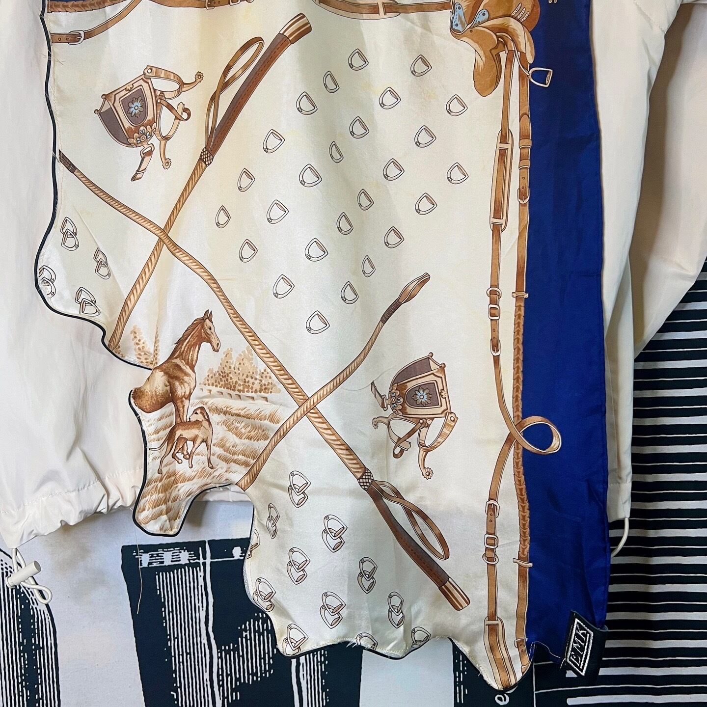波打ったようにカットされたスカーフはパイピング処理されて独特な形を保っています。