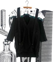 本体にはサスペンダーのような取り外し可能なヒモが付いているので、外して首の後ろでリボン結びにしても可愛いです、かなり個性派な上級者向けアイテム、いろんな着こなしをお楽しみいただけます。