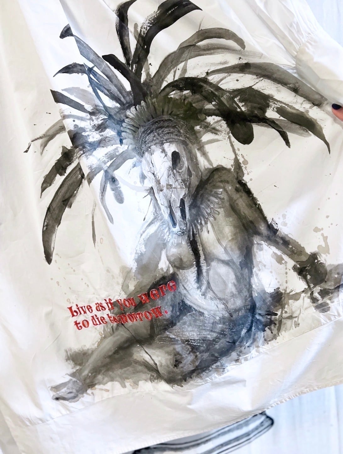 世界の部族をモチーフに手描きでダイナミックなペイントを施し、文字の刺繍を入れた世界にひとつの完全オンリーワンシリーズ。