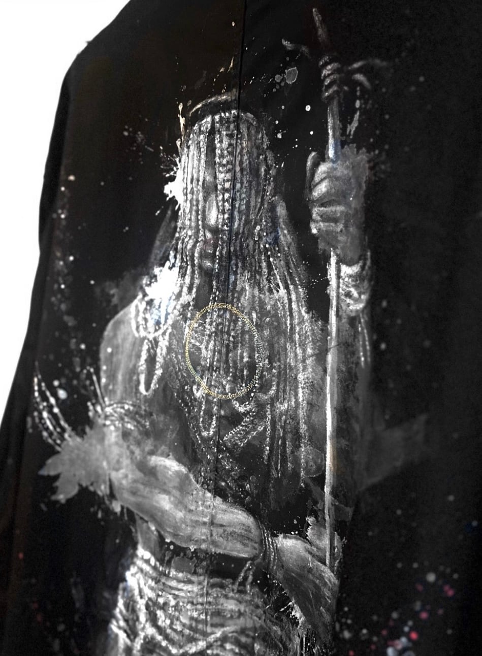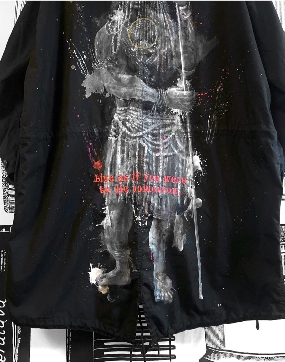 世界の部族をモチーフに手描きでダイナミックなペイントを施し、文字の刺繍を入れた世界にひとつの完全オンリーワンシリーズ。