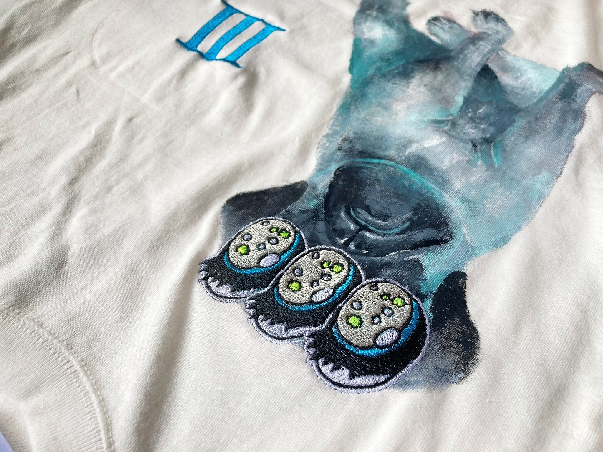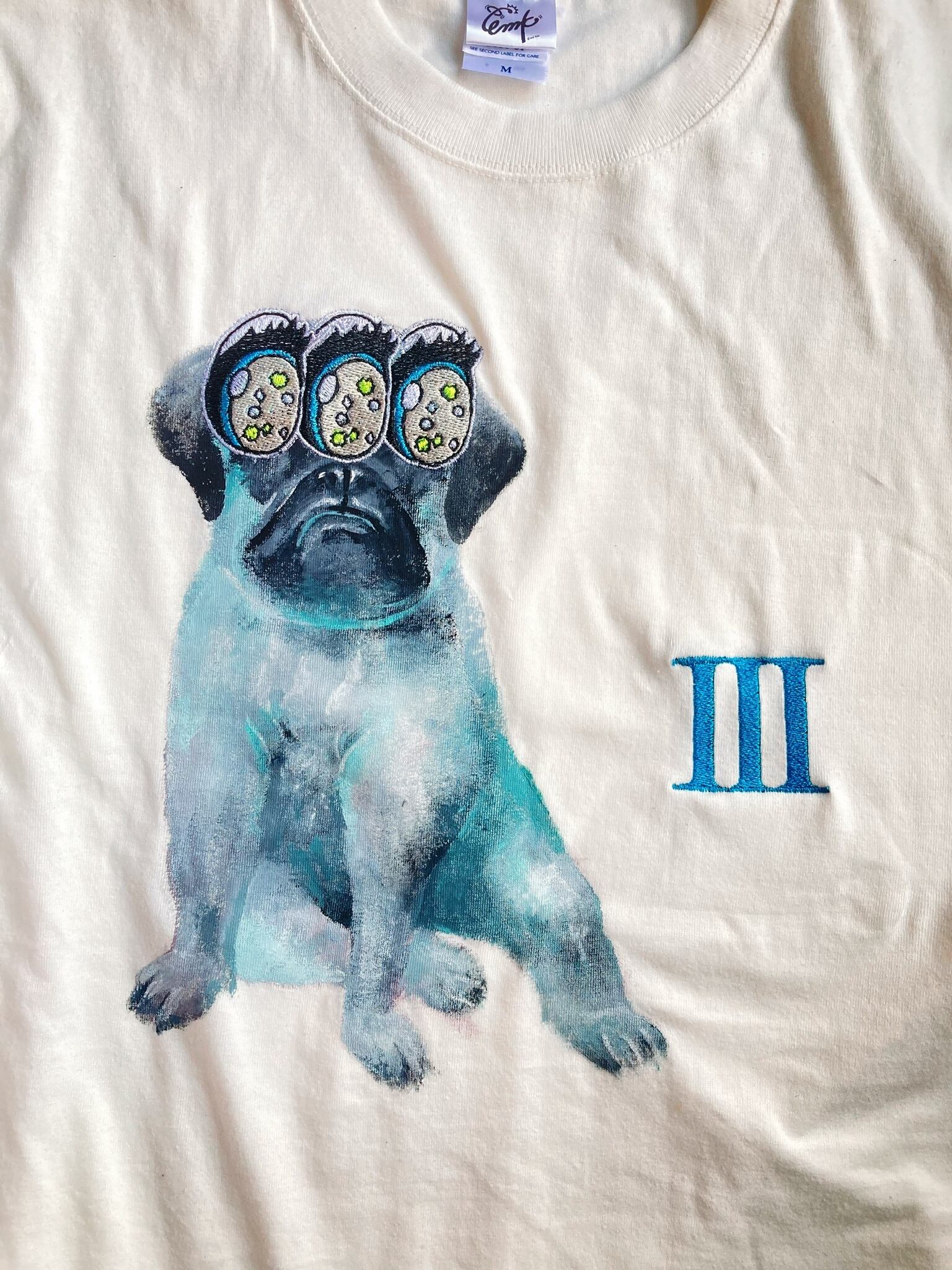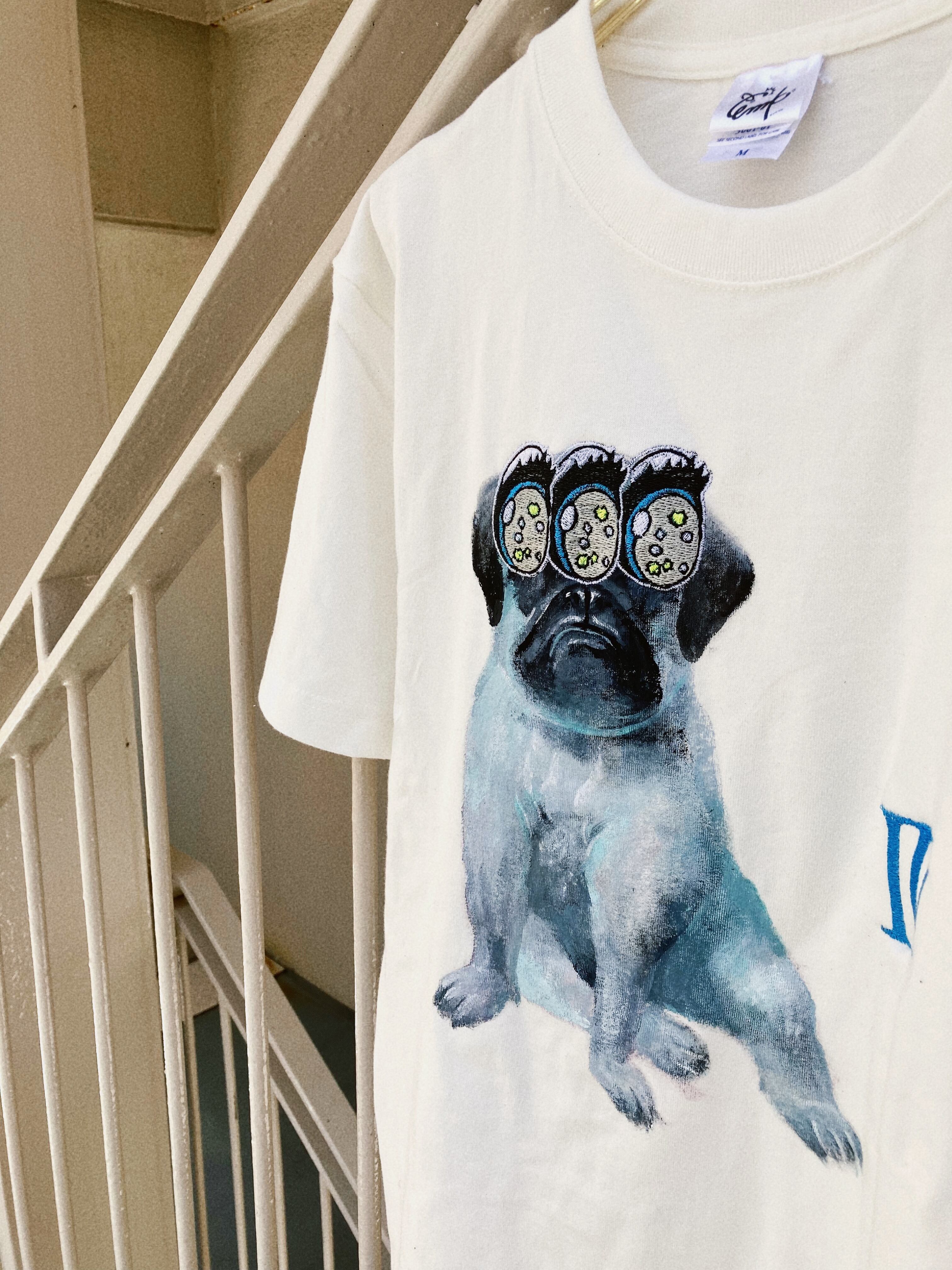 ハンドペイントと刺繍を組み合わせて制作したオリジナルTシャツシリーズ。