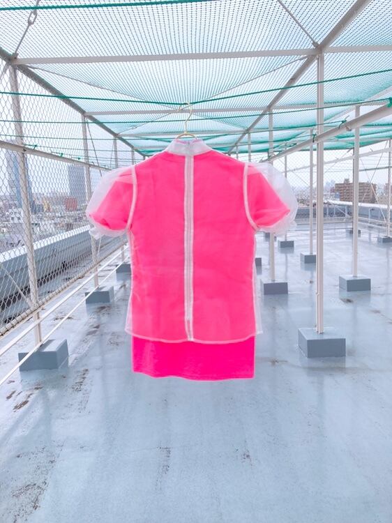 シアー素材のトップスとTシャツを組み合わせたアイテム。それぞれ別々に着ていただけます。