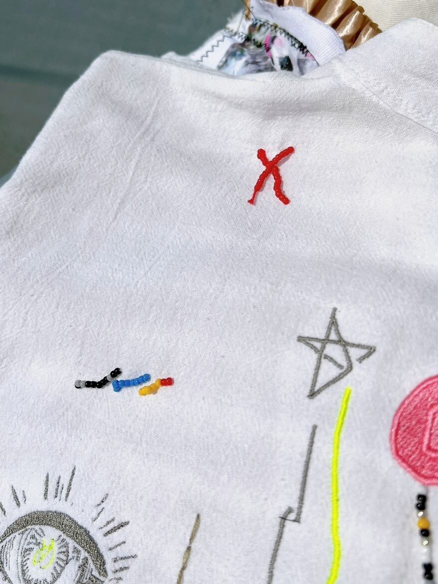 大量の刺繍が組み合わせられた完全なる1点モノ。手刺繍やビーズを装飾した繊細なデザインのスペシャルな一品。