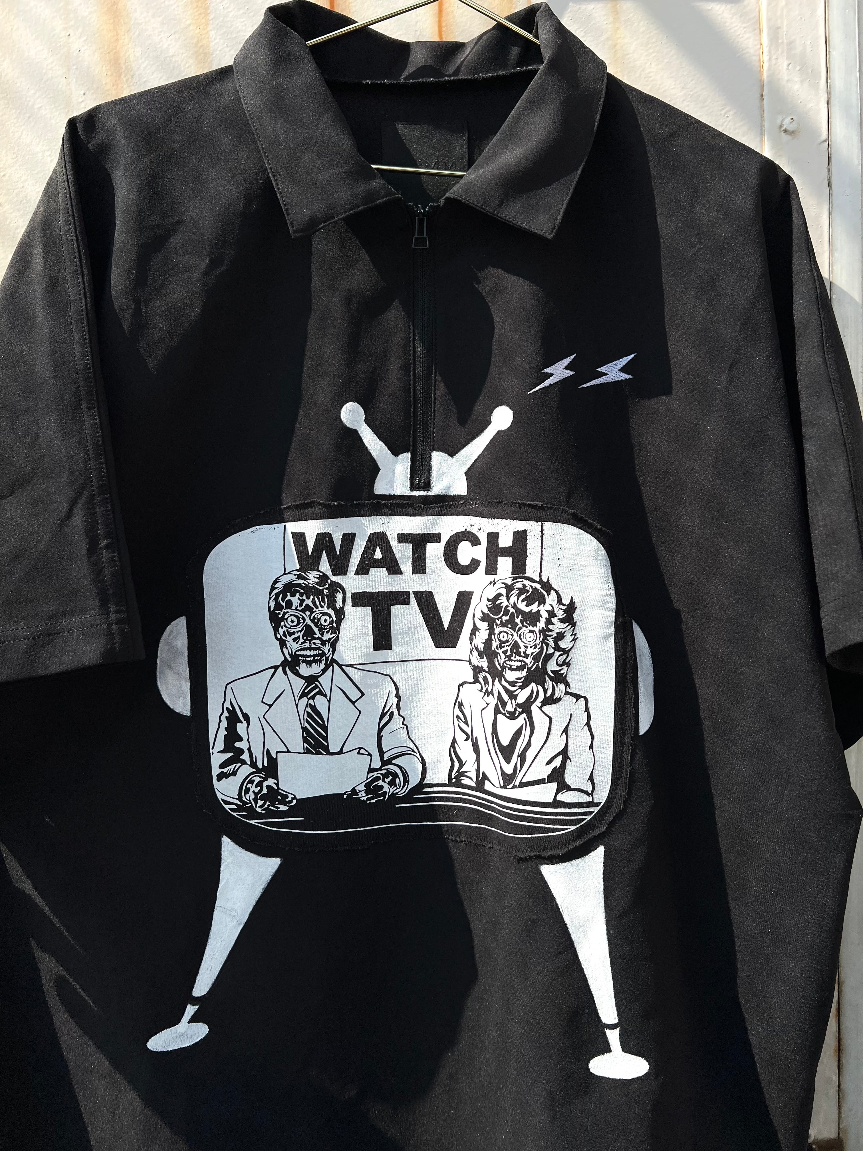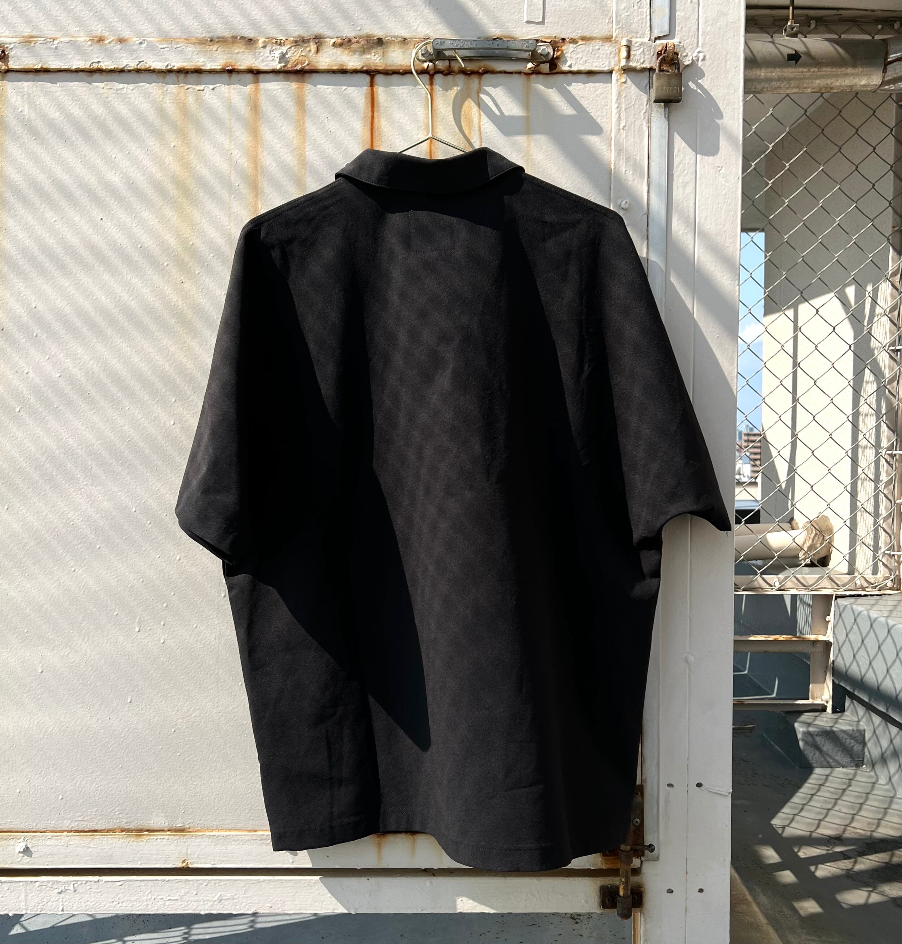 ファブリックと刺繍を組み合わせた個性的な1点モノメンズシャツ。