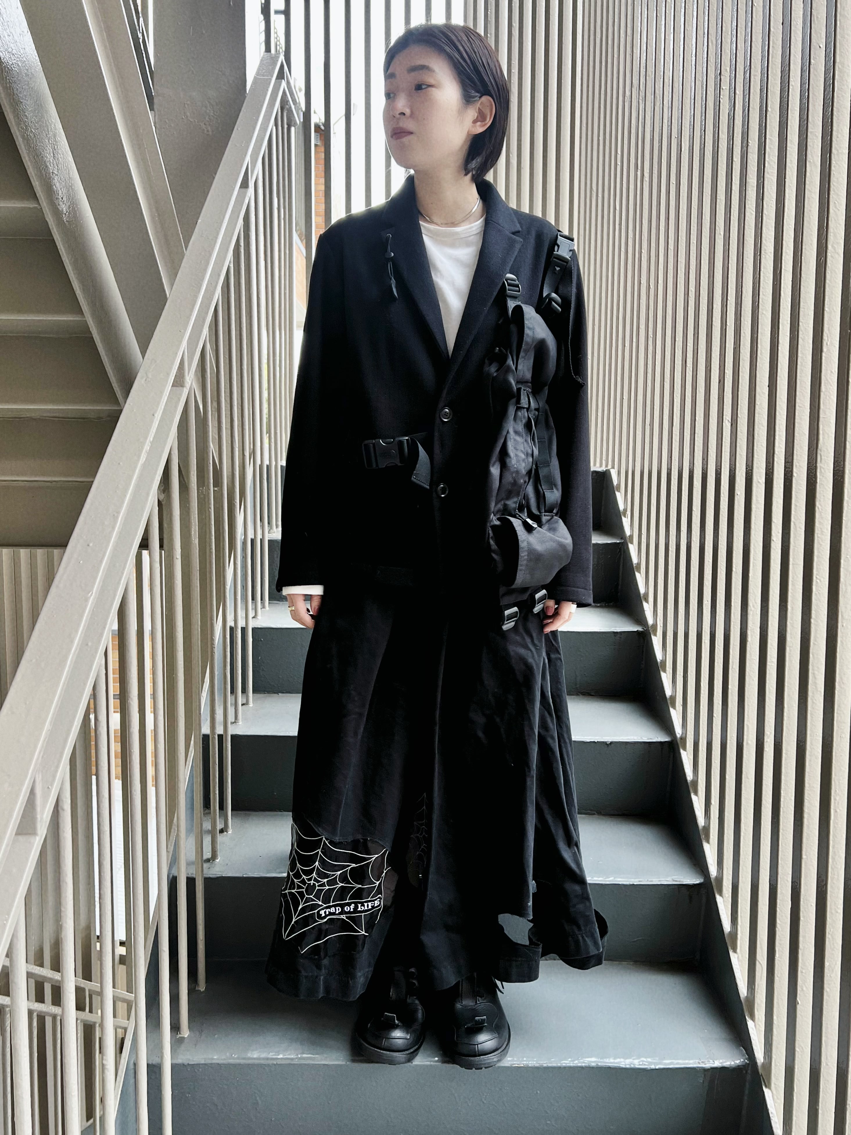 シアー素材にひとつひとつ蜘蛛の巣を刺繍して、大胆に穴を開けたようなデザインと融合しています。もちろん素足でも可愛いですし、隙間から見えるインナーやカラータイツで色遊びをしても◎